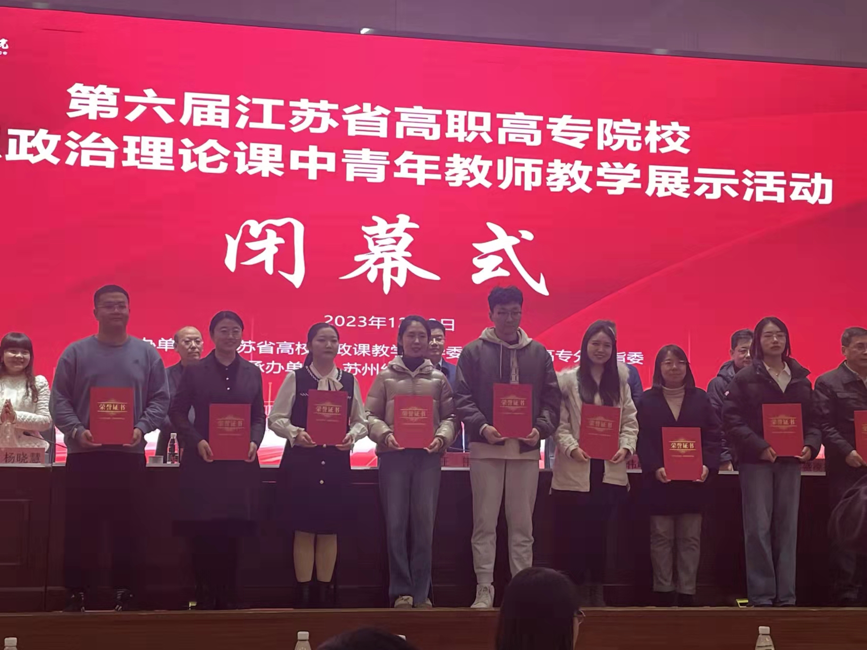 12月10日,由江苏省高校思政课教学指导委员会高职高专分教指委主办的第六届江苏省高职高专院校思想政治理论课中青年教师教学展示活动顺利结束。本次比赛共分4门课程4个组别,全省共有195名优秀教师同场竞技。我校马克思主义学院汪丽君、高文娟老师分别荣获参赛组别的一等奖、二等奖。