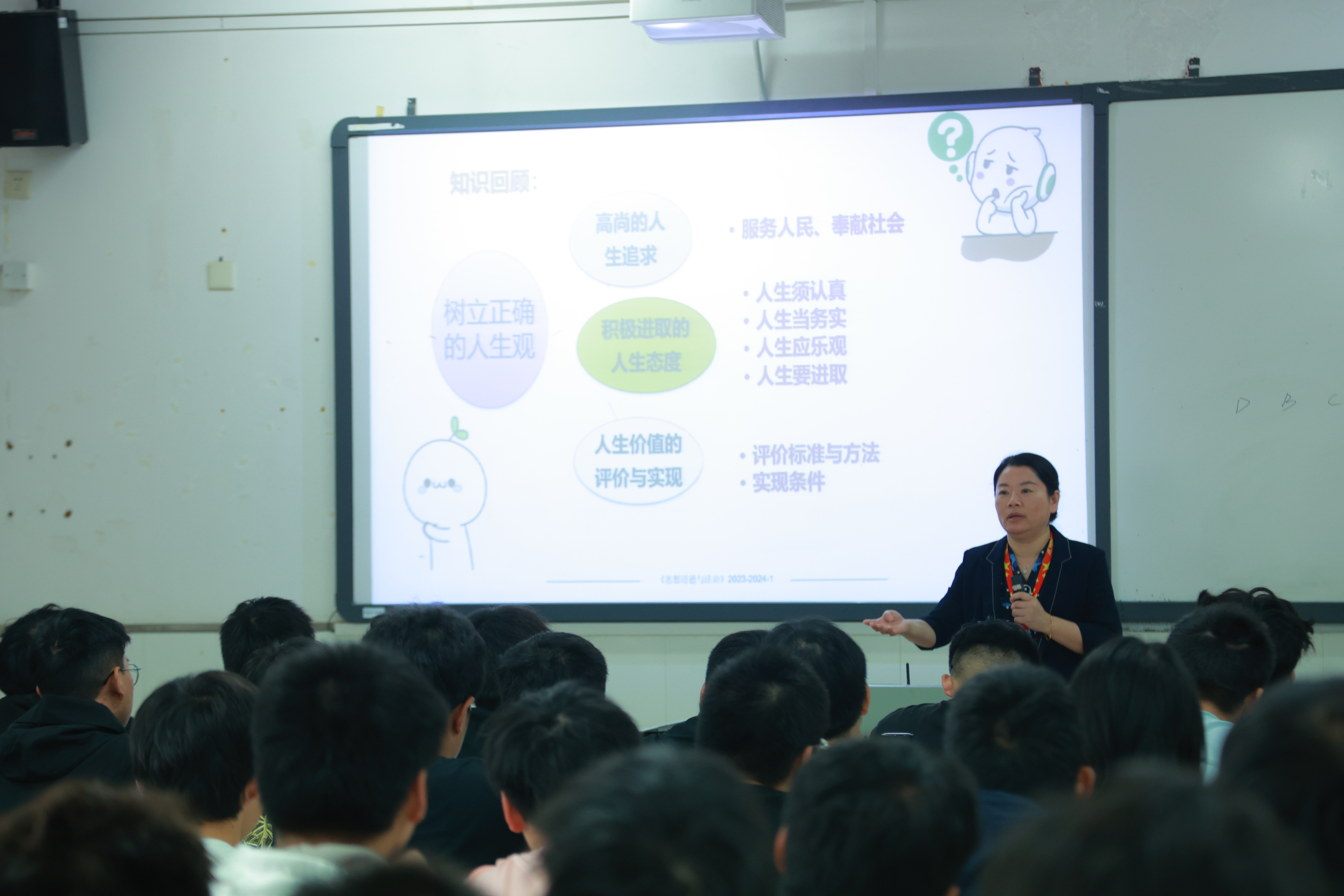 在授课过程中,校领导运用大量的数据和身边鲜活事例,结合当前国际国内经济社会发展形势,向同学们阐述了当代大学生的使命,将大理论与小道理、小故事相结合,近距离、面对面与青年学生进行深入交流,为青年学生讲授了一堂有高度、有深度、有情怀、有温度的思政课。课堂上教师用心教、学生用心悟,师生互动,授课方式方法灵活多样,课堂气氛热烈活泼。
