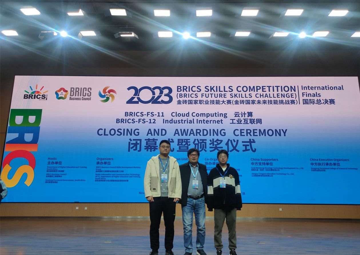 11月4日至7日,2023年金砖国家职业技能大赛“工业互联网”赛项国际总决赛在东营科技职业学院举行。我校信息工程学院教师马海峰、王云良指导的学生闵睿、马益斌以区域选拔赛第一的成绩晋级决赛,并荣获国际总决赛一等奖。