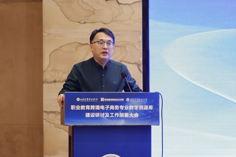 沈琳致辞,我校高度重视职业教育跨境电子商务专业教学资源库建设研讨及工作部署,作为资源库牵头共建单位,将积极配合牵头院校山东外贸职业学院,对标国内外先进职业教育理念,以职普融通、产教融合、科教融汇为路径,加快职业教育数字化转型,全面提升职业院校专业人才培养能力,着力提升教师及企业员工数字化教学能力,建成代表国家水平、具有示范引领的专业教学资源库。