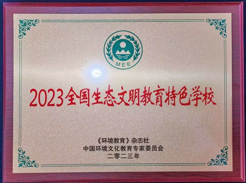 近日,中华人民共和国生态环境部主管的中国环境文化教育专家委员会和《环境教育》杂志社联合举办的关于“2023全国生态文明教育特色学校”评选活动中,我校获评“全国生态文明教育特色学校”,陈俊被授予“全国生态文明教育先进个人”荣誉称号。