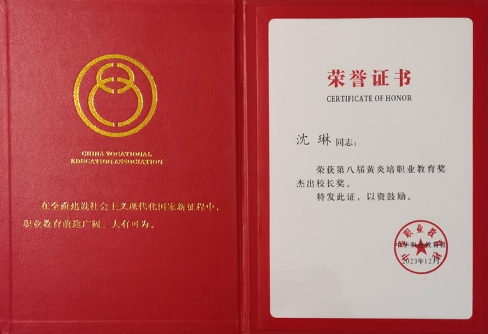 1月15日,第八届黄炎培职业教育奖表彰大会在北京举行。我校党委书记沈琳教授荣获“杰出校长奖”。