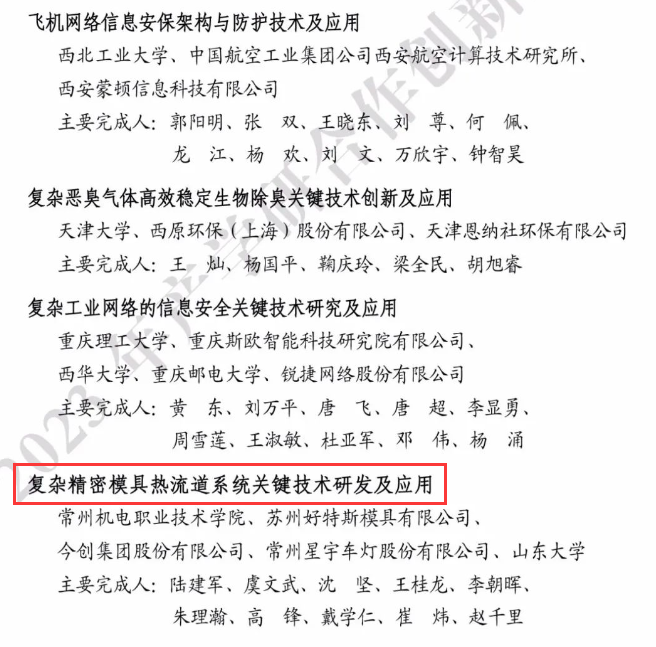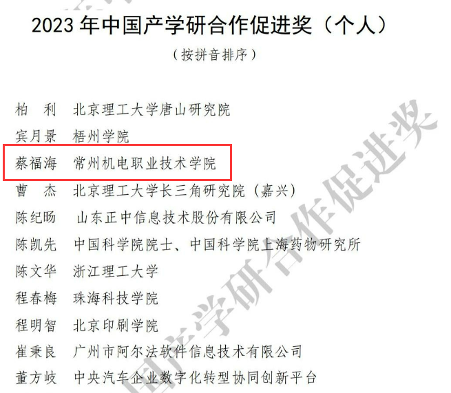 近日,2023年“中国产学研合作创新与促进奖”获奖名单公布。我校申报的“复杂精密模具热流道系统关键技术研发及应用”项目获得 2023 年产学研合作创新成果优秀奖,我校教师蔡福海获2023年中国产学研合作促进奖(个人)荣誉称号。