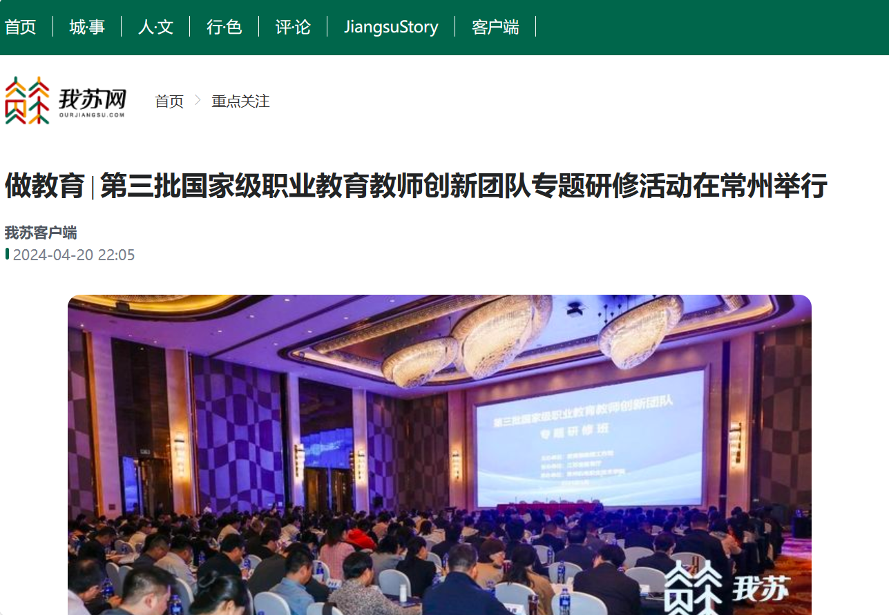 4月18—19日,教育部组织在常州机电职业技术学院举行第三批国家级职业教育教师创新团队专题研修活动。教育部教师工作司、江苏省教育厅负责同志及第三批国家级创新团队负责人和所在学校负责同志等300余人参加此次研修活动。