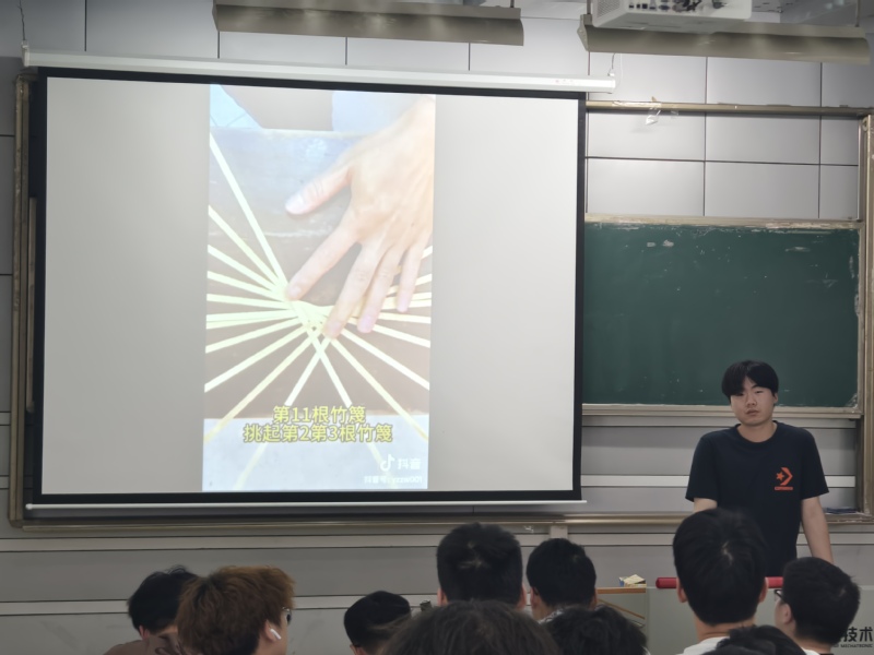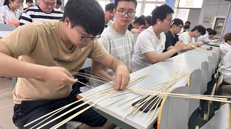 活动以竹篾讲解、动手制作、工艺分享三个活动环节展开。活动负责人为同学们进行竹篾文化讲解以及简单的编法示范,带领同学们了解非遗竹篾的基本知识和编织手法。