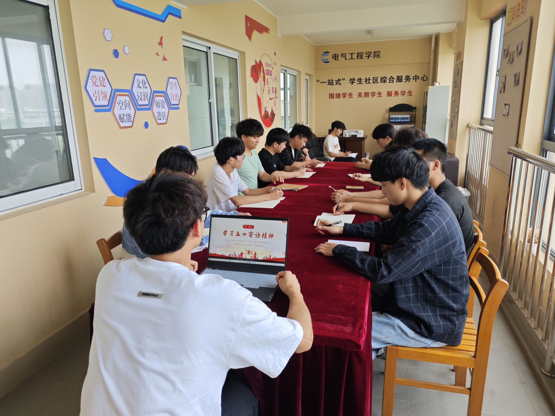 学院学生会负责人杨闰带领青年团员走进电气“一站式”社区,开展朋辈联读活动。围绕习近平五四重要寄语精神用自己的语言分享感悟收获。