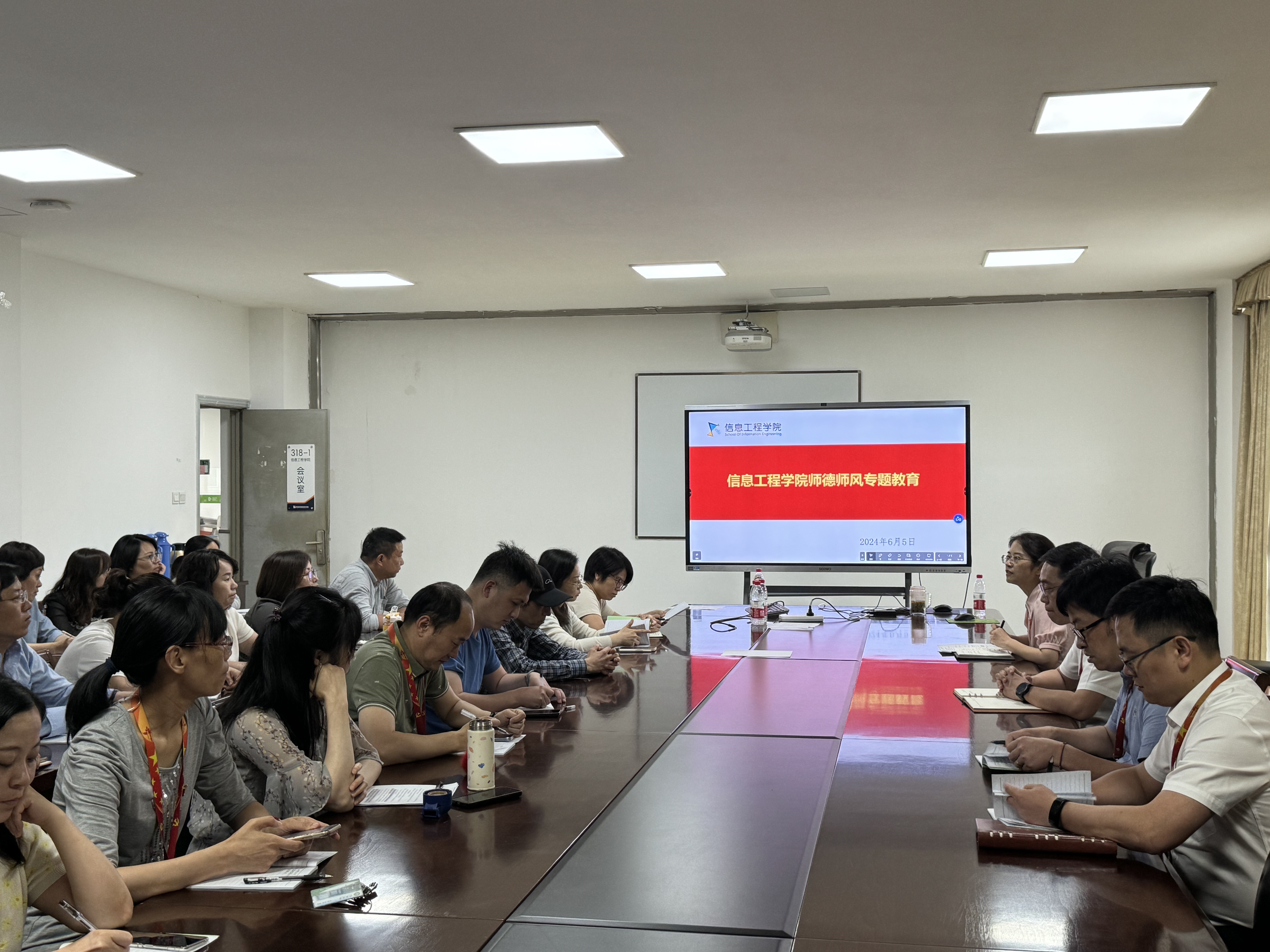 师德,是教师之根;师风,是教育之魂。为进一步加强师德师风建设,规范教师从教行为,6月5日下午,信息工程学院召开全体教师大会,开展师德师风专题教育。教育大会由信息工程学院党总支书记徐莹主持。