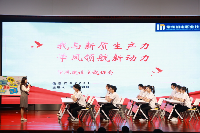 学风建设是高校思想政治教育工作的重要内容,是大学精神的集中体现。刘娟芳解读了《常州机电职业技术学院2024年学风建设方案》,她指出,学风建设是一项系统工程,需要全体同学的共同努力和配合,希望大家深刻认识到学风建设对于个人成长和班级发展的重要性,以高度的责任感和使命感投入到学风建设中,共同营造积极向上的学习氛围。