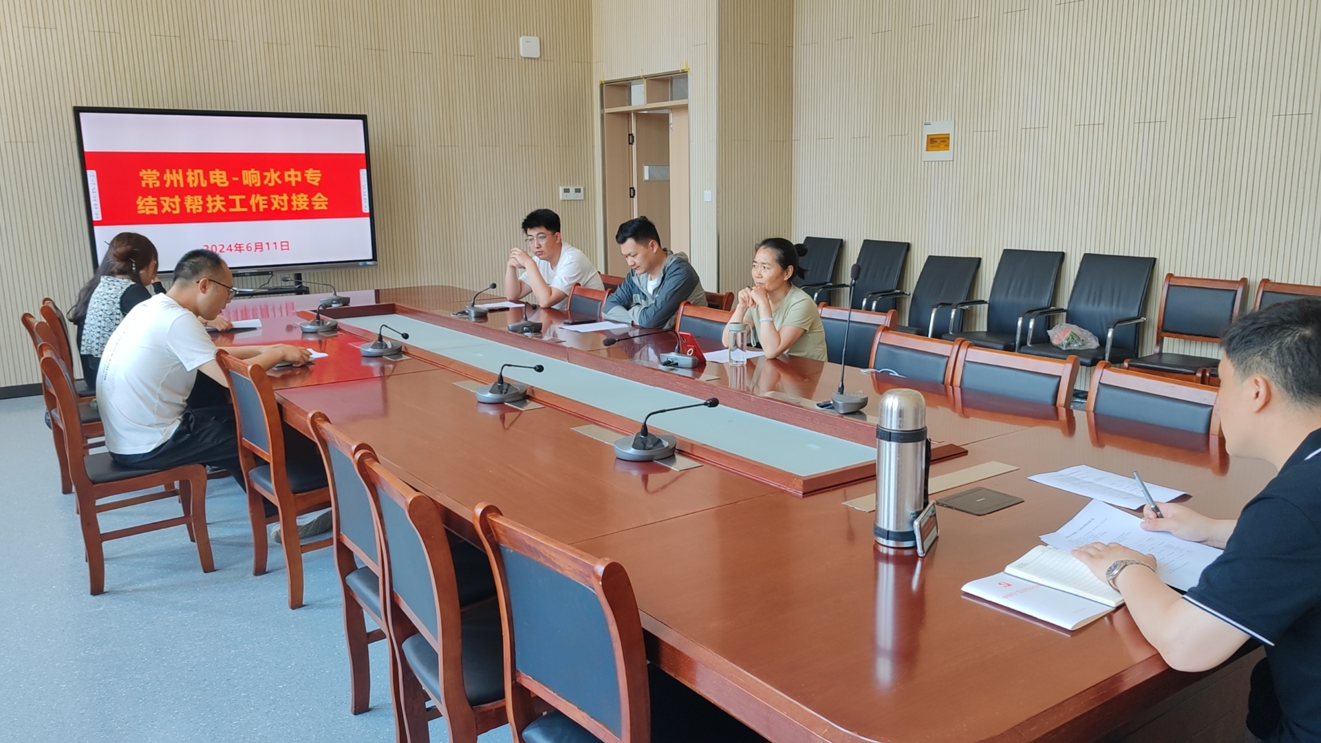 刘江介绍了机械工程学院的基本情况、双高建设以来取得的一系列成果,以及结对帮扶响水中专机械加工专业的初步思路。戴凯凯介绍了响水中专智能制造系的基本情况、机械加工专业的专业建设情况和帮扶需求。双方按照在6月1日省教育厅组织的响水中等专业学校结对帮扶座谈会上,省教育厅职业教育处处长马万全提出的8个方面要求,我校副校长周庆元提出的帮扶思路以及响水中专校长李学宇提出的工作展望,围绕帮扶工作的必要性、可行性、系统性,从党建结对、师资培训、实训基地建设、课程改革、技能大赛、学生交流等方面就响水中专机械加工专业帮扶工作方案进行了深入讨论和对接。