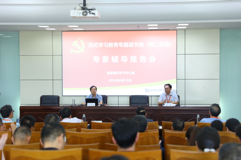 为推动党纪学习教育走深走实,按照中央、省委部署,6月14日,学校举行党纪学习教育专题读书班(第二阶段)暨党委理论学习中心组学习会,邀请常州工学院党委常委、纪委书记孙荣明作辅导报告。学校党委理论学习中心组成员和全体中层及以上干部参加学习,校党委书记沈琳主持。