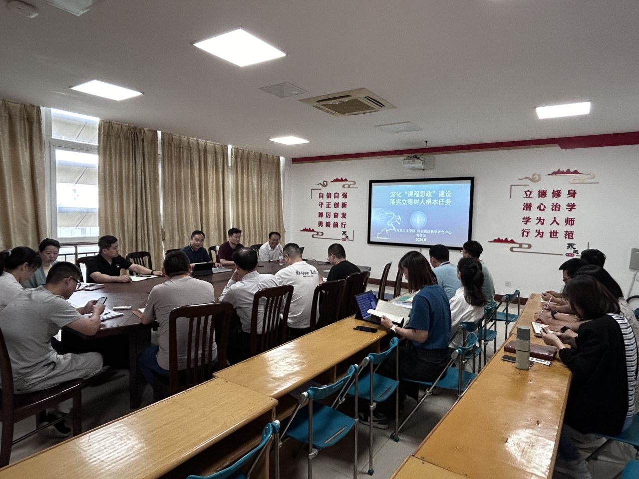 6月19日下午,交通工程学院在善为楼421室开展课程思政教学能力进阶培训,旨在提升本院专任教师在课程思政方面的教学水平。此次培训由马克思主义学院裴智民教授主讲,交通工程学院党总支书记吴海东、副院长宋敬滨及全体教师参加了此次培训。