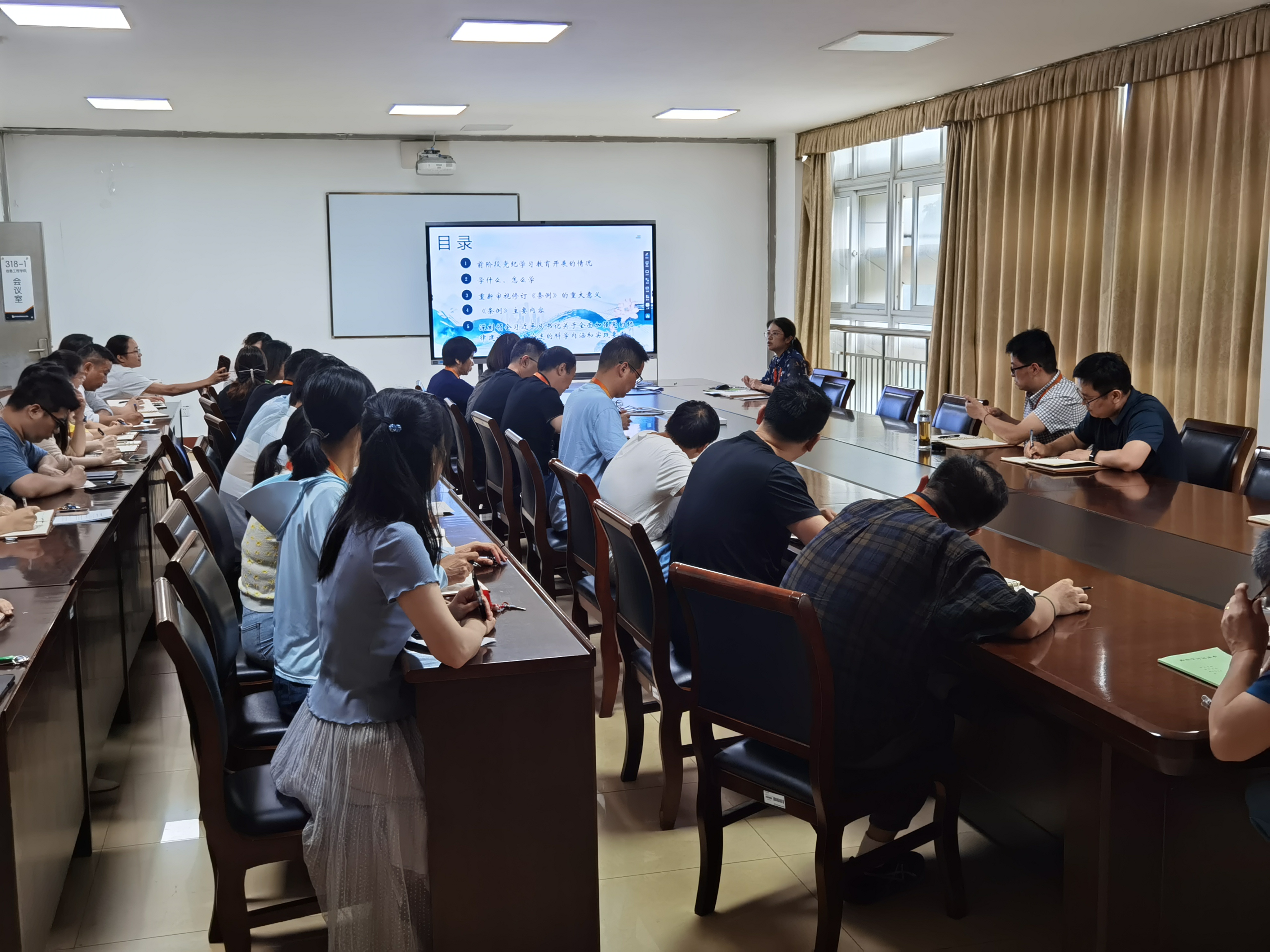 6月19日下午,信息工程学院党总支书记徐莹以《加强党的纪律建设、纵深推进全面从严治党》为题,为全体党员讲授专题党课。