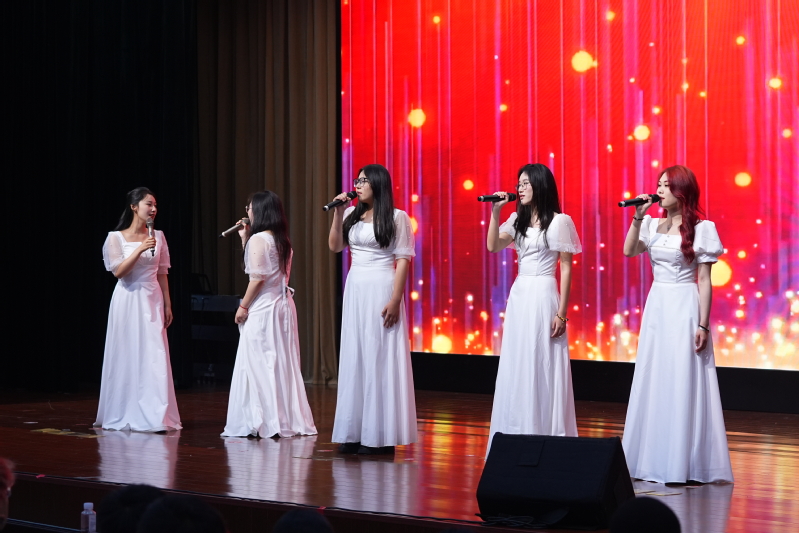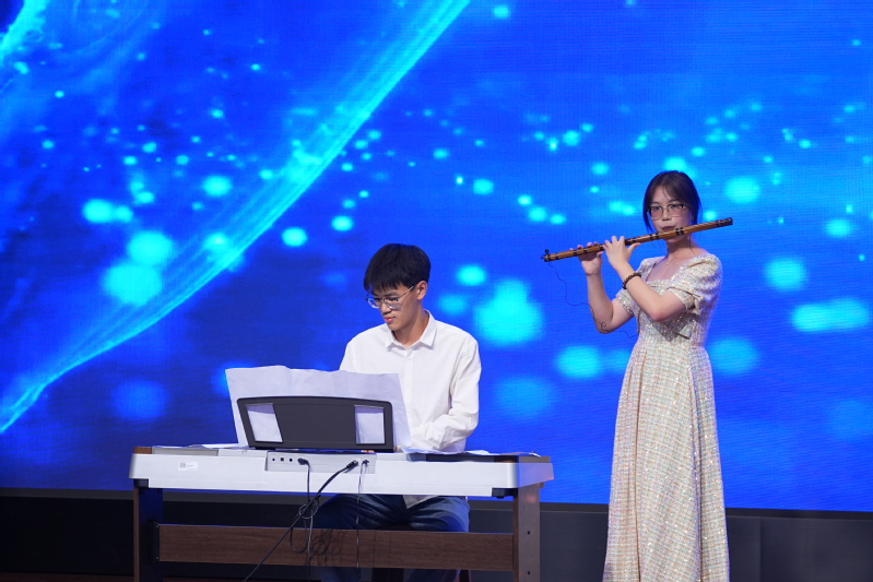 6月25日晚,“山水韵苏克情·石榴籽祖国行”文艺汇演在图书馆红厅举行,500余名师生观看了演出。研学团带来了《火焰舞》《鲜花》《阿依古丽》等民族特色节目,我校艺术团的同学们带来了朗诵、舞蹈串烧、器乐演奏、歌曲演唱等节目,现场歌舞飞扬,青春四溢。
