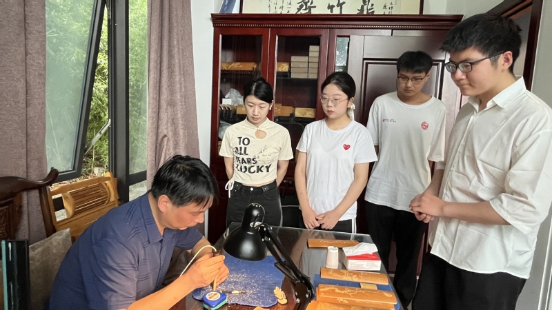 6月25日,经济管理学院走进常州市工艺美术大师示范工作室——徐文博留青竹刻艺术馆,组织开展“我与工匠面对面”劳动教育实践活动。