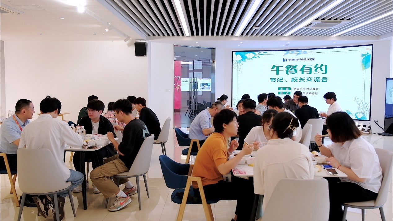 6月27日中午,我校第三期“梦启机电,共话成长”书记校长午餐有约在丰登楼四楼知行馆举行。党委副书记朱平、纪委书记丁振中、副校长周庆元出席,产教合作部、就业办公室副部长刘骏,后勤管理处副处长产勇虎参加午餐会。会议由学工处处长刘娟芳主持。