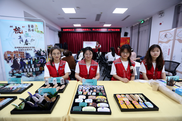 6月28日下午,创意设计学院联合天宁区青龙街道龙湖郦城社区举办“党的光辉照我心,同心向党献真情”活动。学院分团委书记吴小磊带领“梳画青春”暑期社会实践团队的同学们向社区居民展示了团队师生创作的常州梳篦非遗作品。