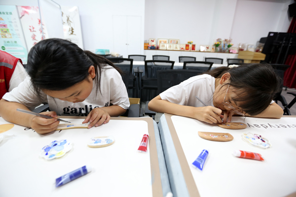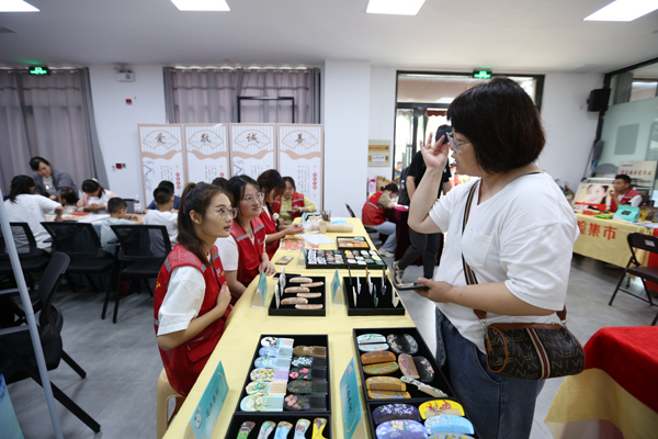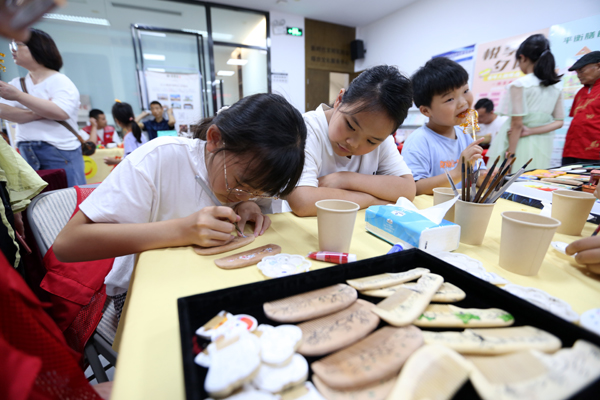 活动现场还设置了互动体验区,社区里的小朋友们拿起画笔,在大学生们的指导下尝试在梳篦上勾勒出各种图案,现场氛围热烈而温馨。