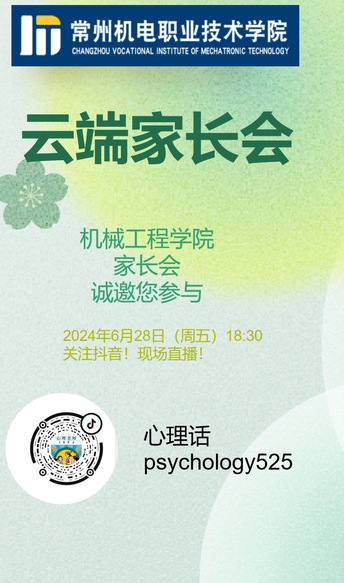 6月29日,机械工程学院“阳光海岸”心理辅导站积极适应数字化时代需求,运用抖音直播平台,举办了一场主题为“用心沟通,成就未来”的云端心理家长会,是学院心理辅导站探索家校共育新模式的积极探索。