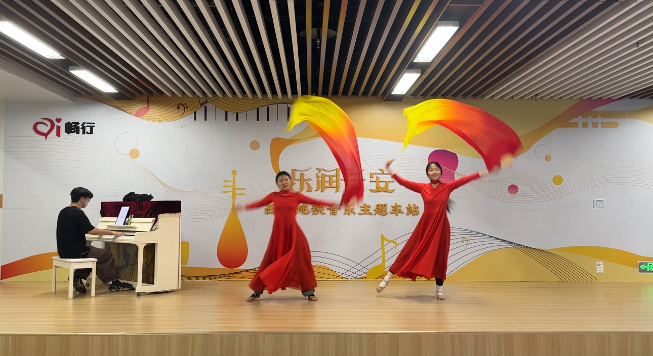 实践团成员们在学校、常州北和西安火车站、西安地铁音乐主题车站用舞蹈和歌声演绎《灯火里的中国》,讲述党的初心,描绘最美中国梦。活动吸引了众多过往市民的纷纷驻足,在高铁上,实践团成员偶遇中国人民解放军炮兵第十师董存瑞部队60岁退伍老兵,为他们送上最真挚的祝福。