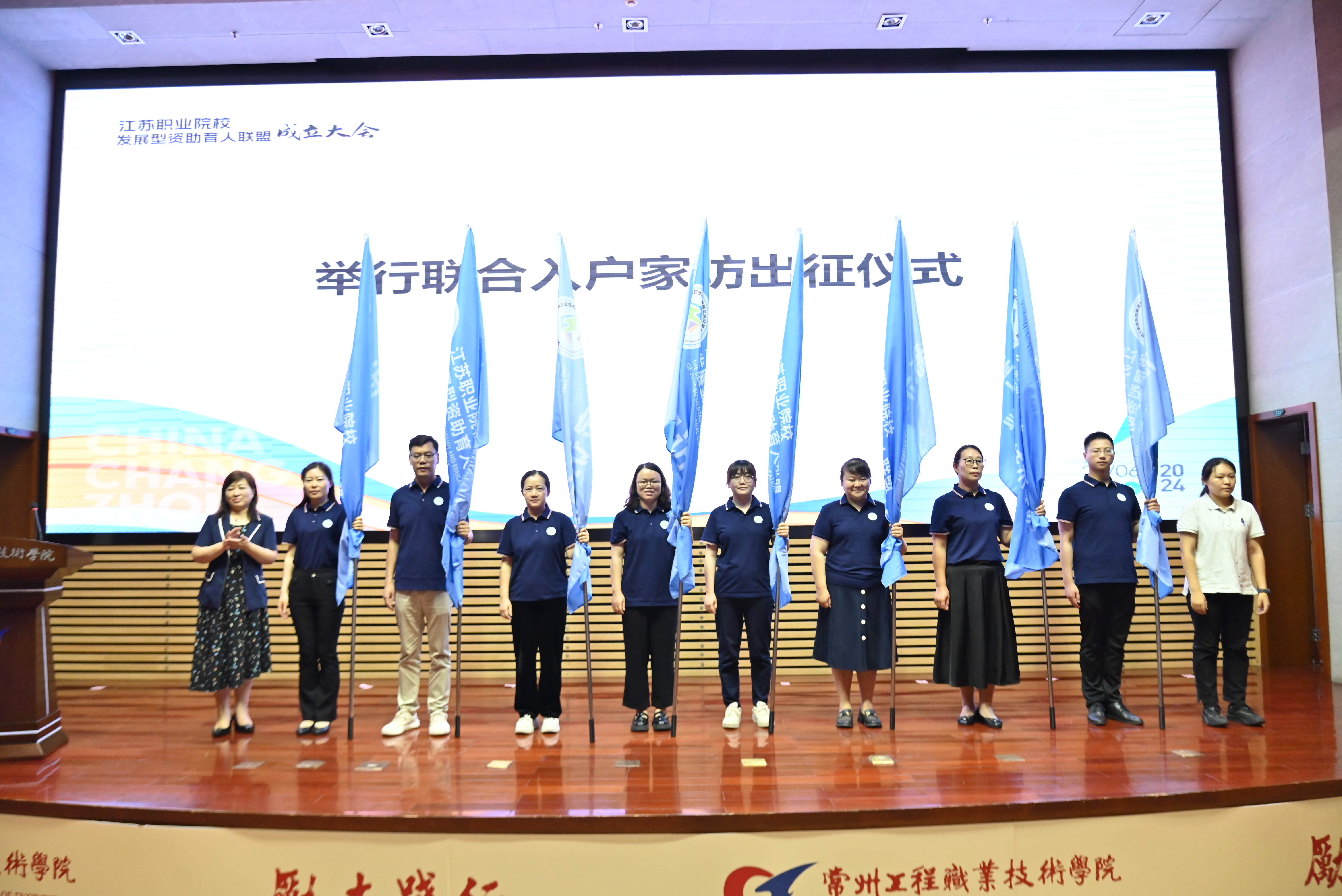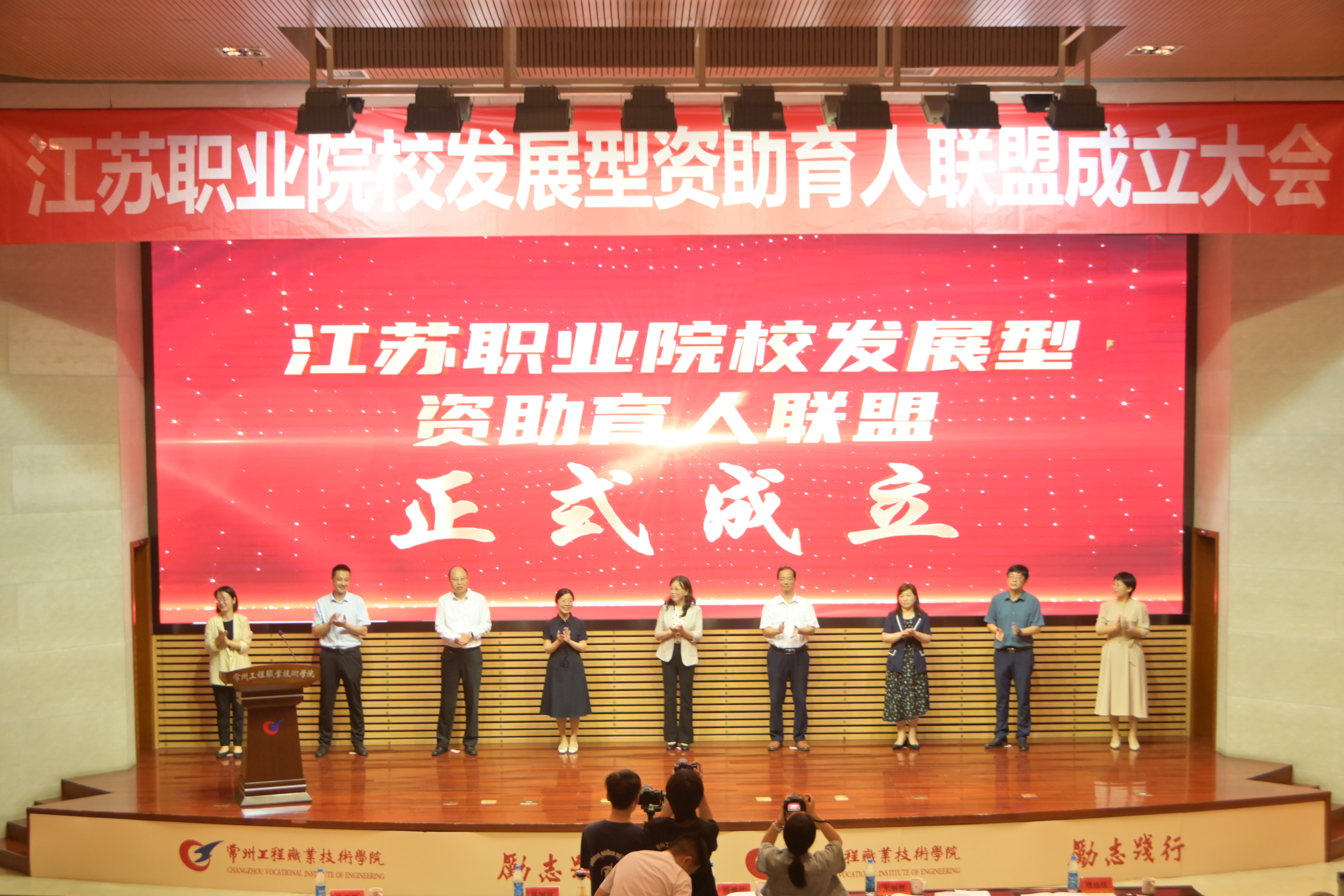 殷雅竹与我校在内的八所发起院校领导共同为联盟揭幕,标志着江苏职业院校发展型资助育人联盟的正式成立。