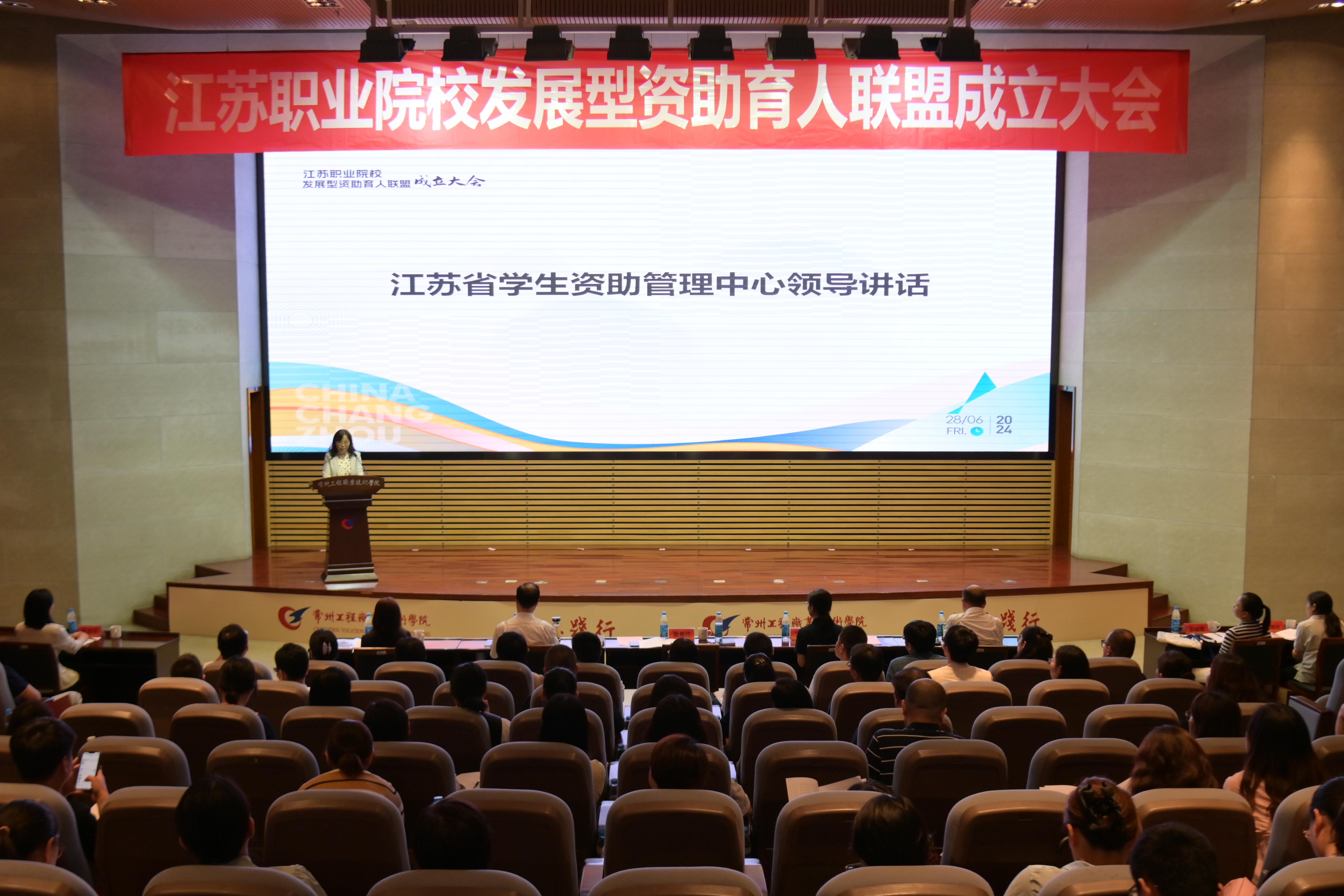 6月28日下午,江苏职业院校发展型资助育人联盟成立大会在常州工程职业技术学院召开。江苏省学生资助管理中心主任殷雅竹及29所联盟院校的校领导和师生代表们出席会议。我校作为联盟常务理事应邀参加。