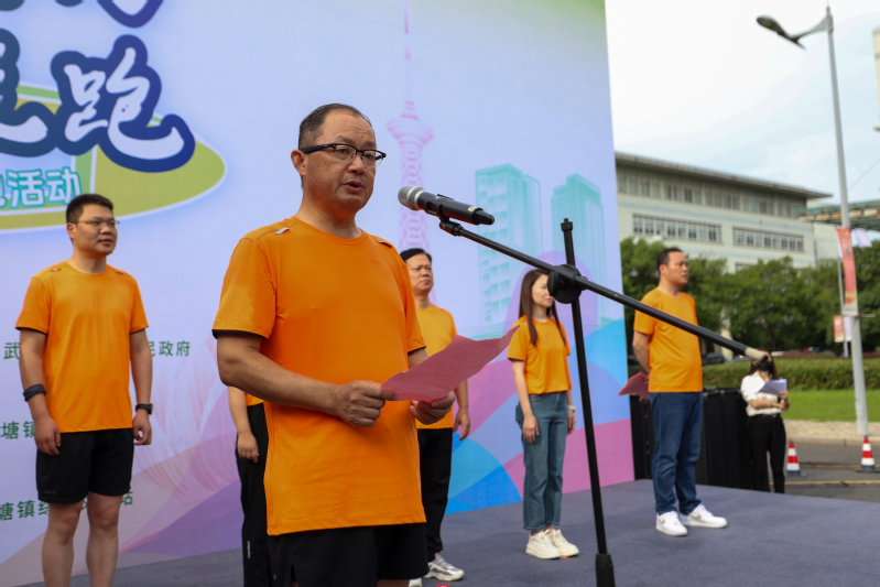 湖塘镇商会副会长恽中方代表商会跑团发出倡议,号召大家以跑步为媒介,树立健康理念,壮大爱心公益事业,助力湖塘高质量发展。