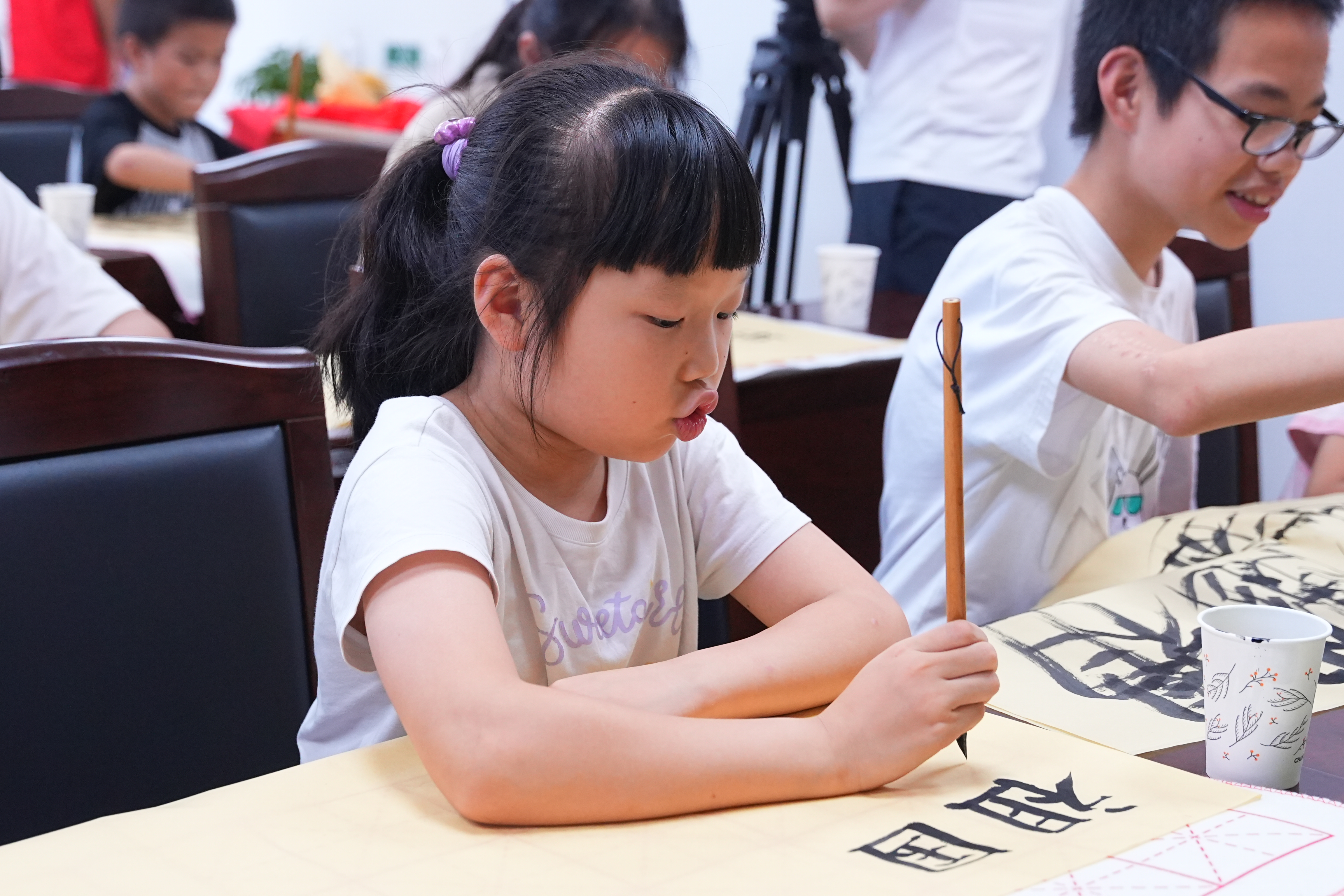 此外,在校水墨丹青书法协会的支持下,实践团还为小朋友们精心准备了一场充满墨香的书法互动体验课,让孩子们在笔墨间感受中华传统文化的独特魅力,体验书写的乐趣与艺术的熏陶。
