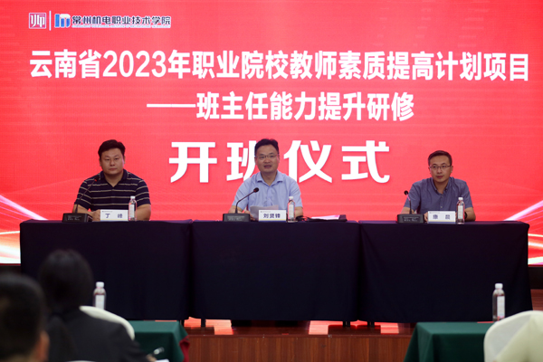 7月8日上午,由创意设计学院承办的云南职业院校班主任能力提升研修班开班仪式在常州新苑大酒店举行。我校副校长刘贤锋,创意设计学院院长康晨、副院长丁峰以及100名来自云南省中职、高职院校的教师学员出席开班仪式,开班仪式由丁峰主持。