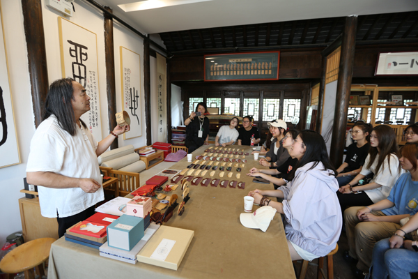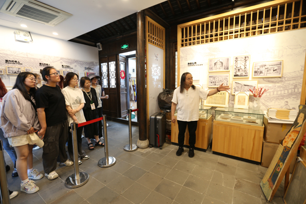 在青果巷邢粮梳篦艺术馆,实践团成员与邢粮老师面对面交流学习,实地参观馆藏梳篦作品,揭开梳篦的“神秘面纱”,感受非遗的独特魅力。据邢老师介绍,近年来梳篦以不断创新的形式,非遗文化联手红色精神,为建党百年献礼、为党的二十大献礼!馆内每一把做工精良的梳篦背后都藏着一个动人的故事,成员们被深深地吸引。邢老师还结合自己的课堂内容,与成员们进行了互动交流,为以后的设计创作打下了坚实的基础。