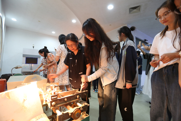 在武进区青少年活动中心,实践团队成员零距离体验梳篦制作。常州梳篦第九代传人、江苏省工艺美术大师、江苏省研究员级高级工艺美术师、“江苏工匠”邢粮老师为实践团详细讲解了常州梳篦的历史渊源、制作工艺,从梳子开齿到撞齿、划样、锯背、描绘,一道道复杂的工序让实践团成员们惊叹连连,对工匠精神有了深刻的认识。在邢老师的指导下,大家亲手操作工具,从选材、开料、制胚到雕刻、打磨、抛光,一步步体验了常州梳篦制作的繁琐与精妙,深刻体会了非遗传承人的匠心和坚持。