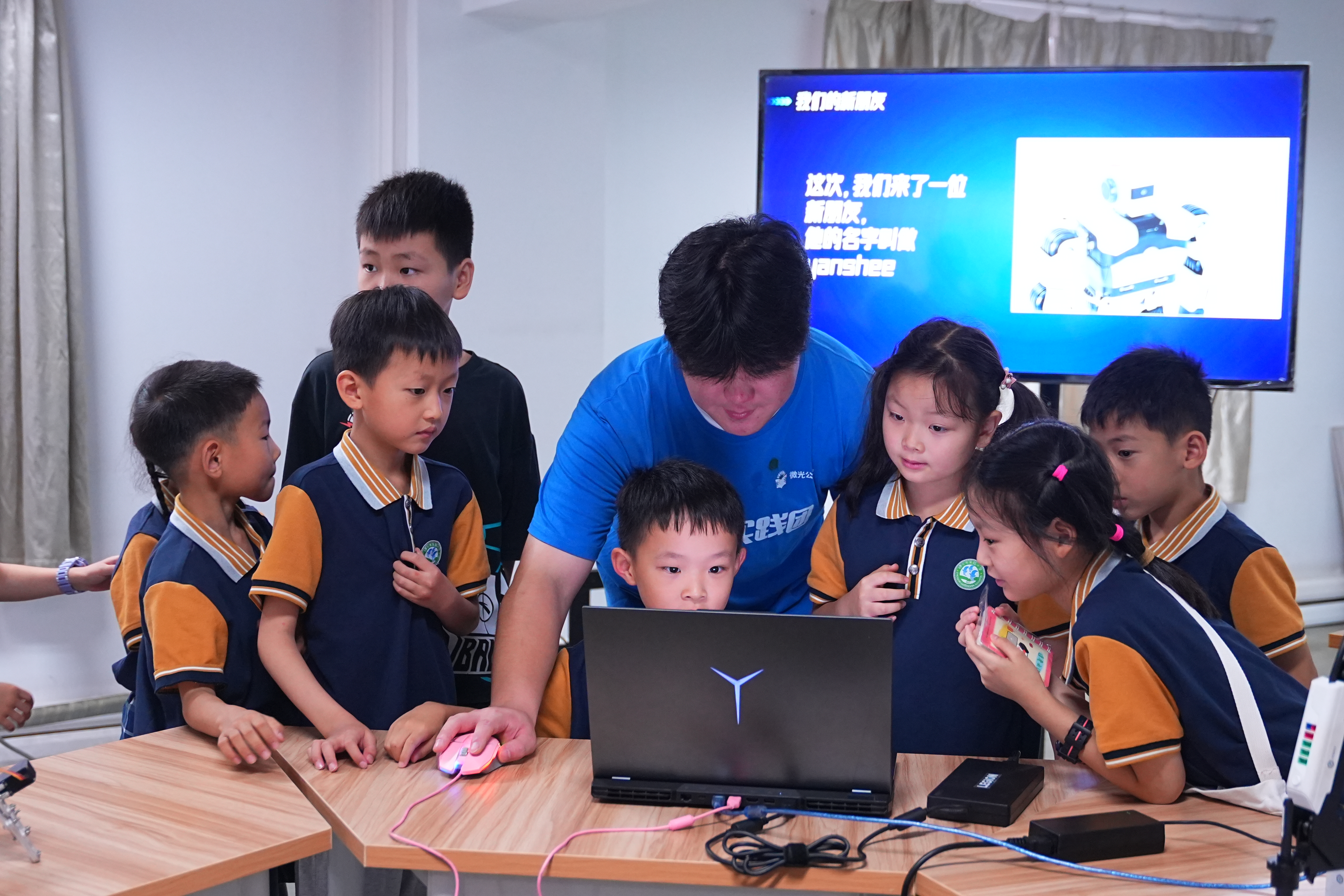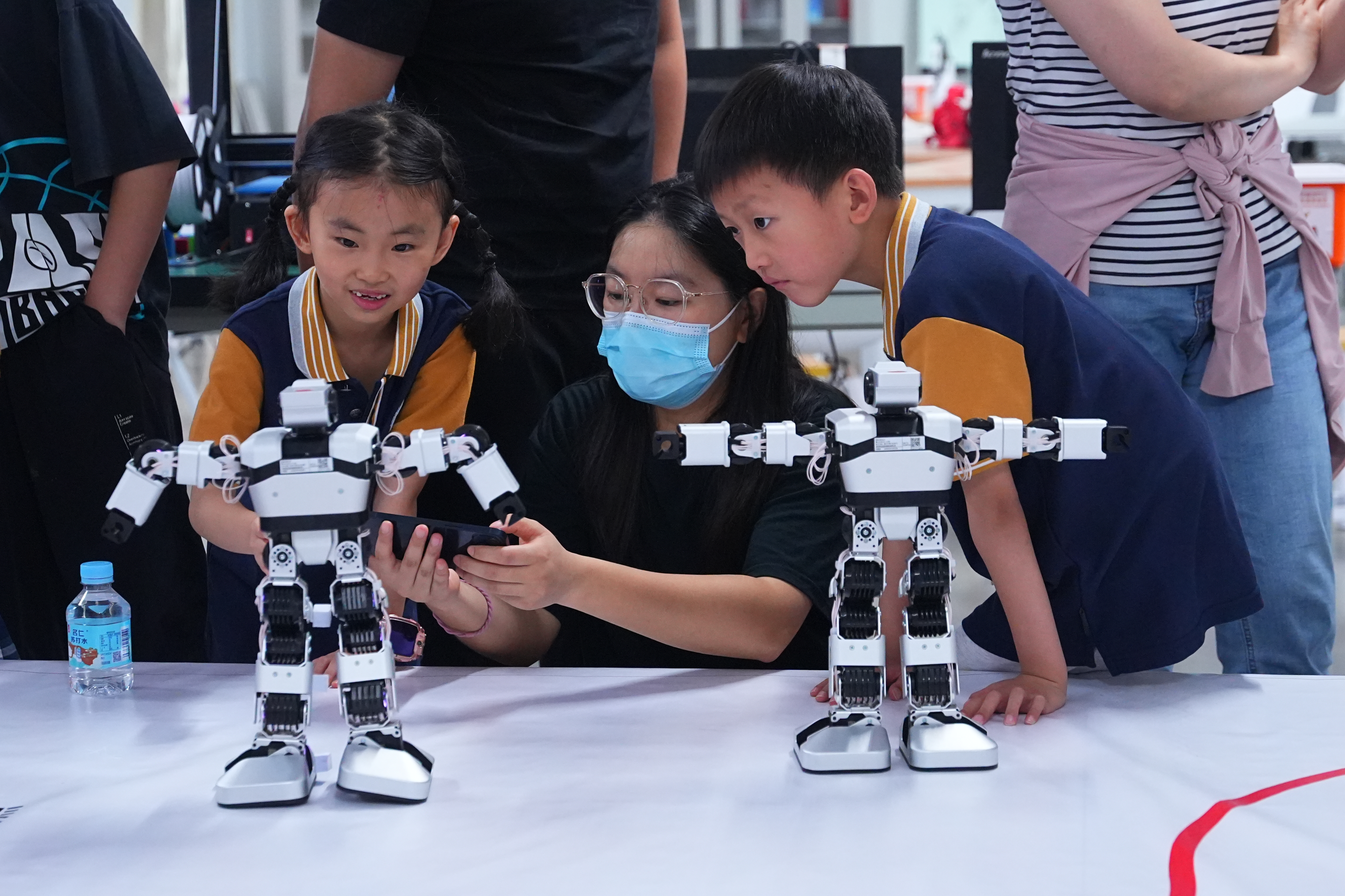 实操过程中,智能机器人灵活地在纸张上勾勒出小朋友们的名字,让他们感受到科技的神奇,人形智能机器人亲自操作的乐趣也让孩子们脸上洋溢着喜悦和自豪。家长们也加入其中,共同享受亲子时光,整个工作室充满了欢声笑语。