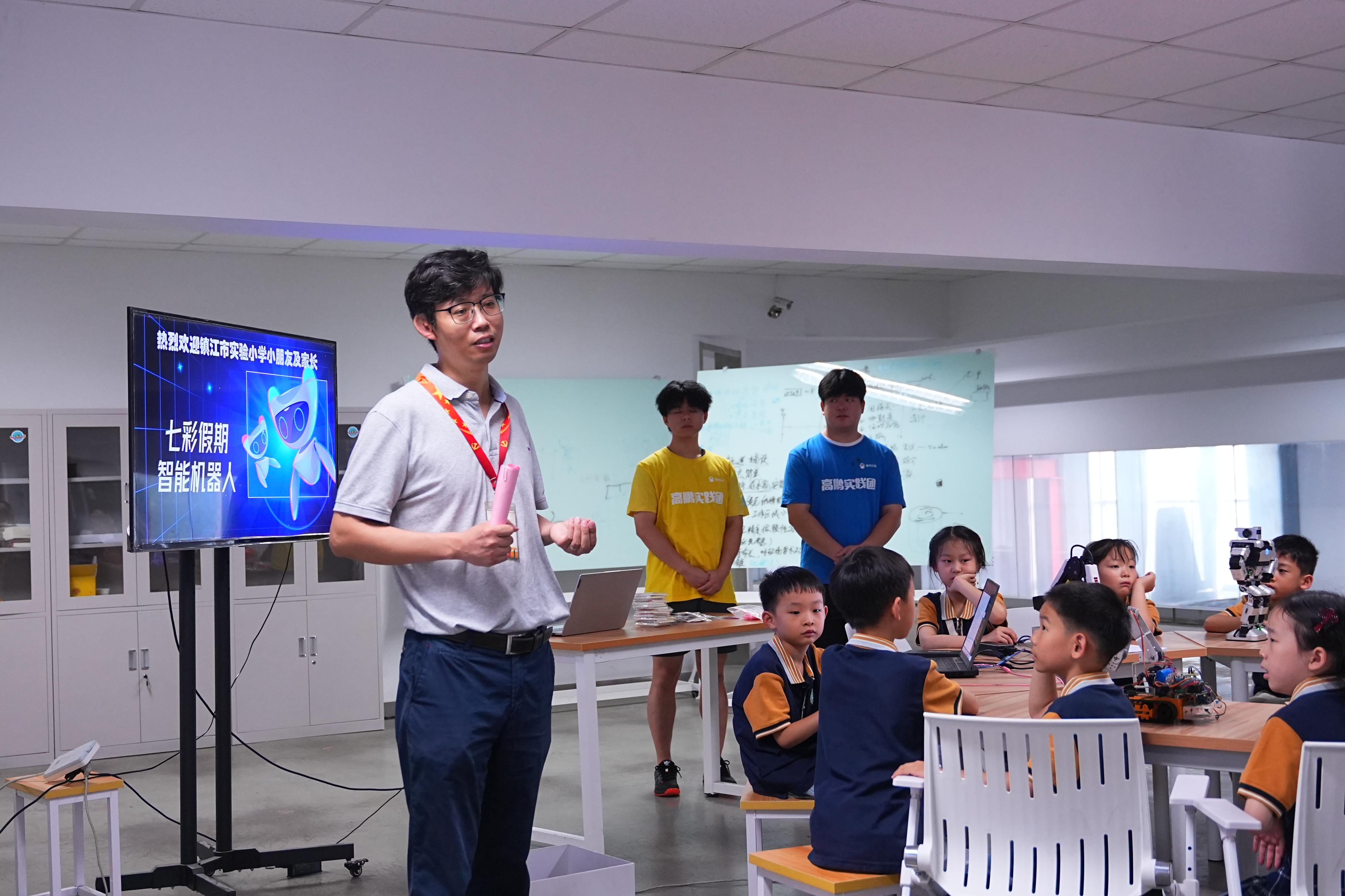 在专业工作室老师靳敏及核心成员的带领下,师生共同见证科技与童趣的碰撞。课堂上,魏梦成同学生动地描绘了智能机器人的发展历程及其在日常生活中的应用,小朋友们听得津津有味,对未来世界充满向往。
