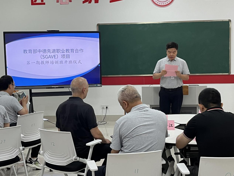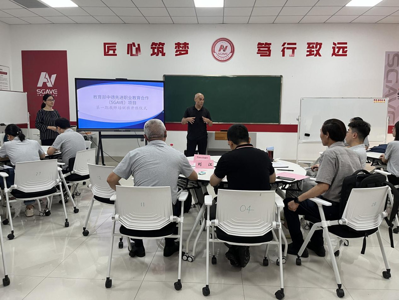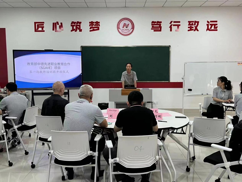 7月22日,教育部中德先进职业教育合作(SGAVE)项目第一期教师培训班在我校开班。德马吉森精机学院教育行业总监孙立、我校机械工程学院院长刘江出席开班仪式。