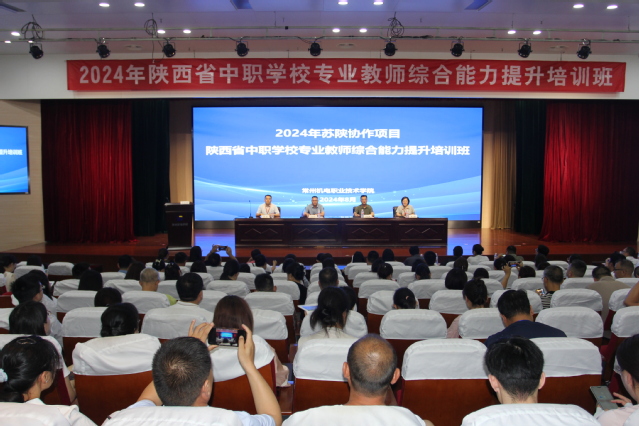 8月9日,由陕西省教育厅主办,我校承办的2024年苏陕协作项目—陕西省中职学校专业教师综合能力提升培训开班典礼在我校图书馆红厅举行。江苏省教育厅职业教育处副处长徐照民,我校党委委员、副校长刘贤锋,继续教育学院院长施皓等出席,培训项目负责人、工作人员及参训学员200余人参加典礼。典礼由我校电气工程学院副院长谢小敏主持。