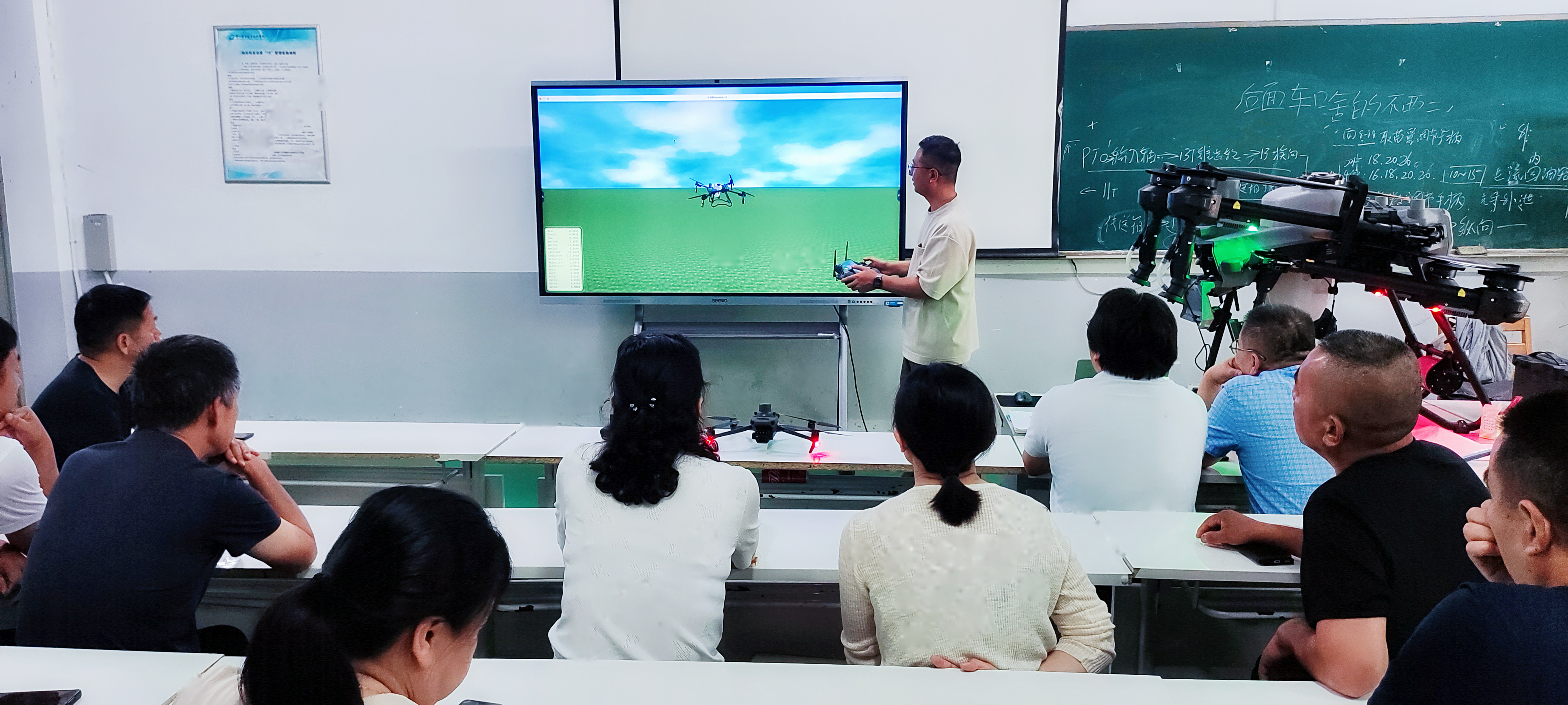 培训班采用理论和实践结合的方式进行,主要内容有智能农机技术及装备应用与实践、低空经济发展趋势与农业生产应用,电动农机发展应用现状及趋势、自动驾驶与无人驾驶技术应用,农用无人驾驶航空器安全操作规范及注意事项、施药技术与用药安全等理论课程。为了确保培训效果,学校还安排了实践操作环节,组织学员开展农用无人驾驶航空器拆装与调试、飞行操作、自动驾驶辅助装置安装与调试、无人驾驶农机装备演示与操作。