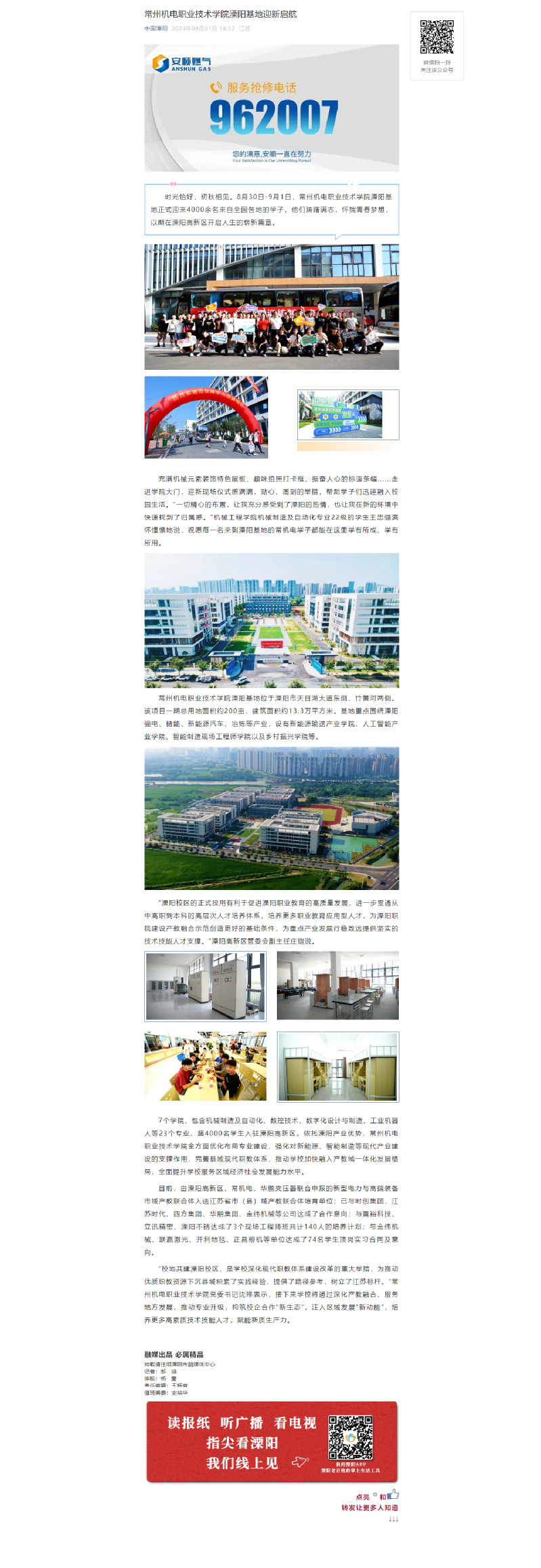“校地共建溧阳校区,是学校深化现代职教体系建设改革的重大举措,为推动优质职教资源下沉县域积累了实践经验,提供了路径参考,树立了江苏标杆。”常州机电职业技术学院党委书记沈琳表示,接下来学校将通过深化产教融合、服务地方发展、推动专业升级,构筑校企合作“新生态”,注入区域发展“新动能”,培养更多高素质技术技能人才,赋能新质生产力。