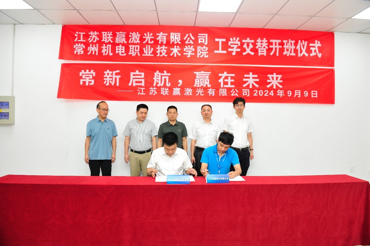 9月9日,电气工程学院“工学交替”现场工程师班在江苏联赢激光有限公司举行开班仪式,22级智能制造装备技术专业学生将在联赢激光进行为期一个月的工学交替、企业现场教学实践。溧阳高新区经济发展局局长庄磊、我校副校长周庆元、江苏联赢激光有限公司总经理郭自然出席开班仪式。溧阳高新区经济发展局二级主任科员陆福金以及我校产教合作部部长刘刚、电气工程学院党总支书记周斌、企业现场教学的老师学生们参加了开班仪式。