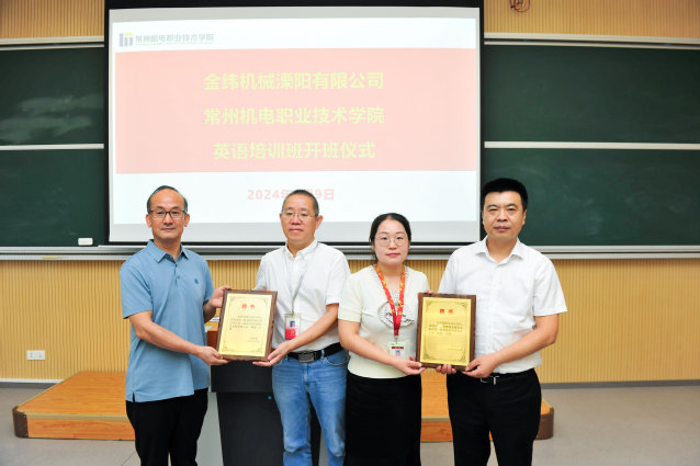 9月9日,我校与金纬机械溧阳有限公司在溧阳基地联合举办了英语培训开班仪式。溧阳高新区经发局局长庄磊、副局长陆福金,金纬机械溧阳有限公司总经理徐国军、人力资源部部长张群,我校副校长周庆元、通识教育部主任仇超、校产教合作部部长刘刚,培训班老师、全体学员参加了开班仪式。