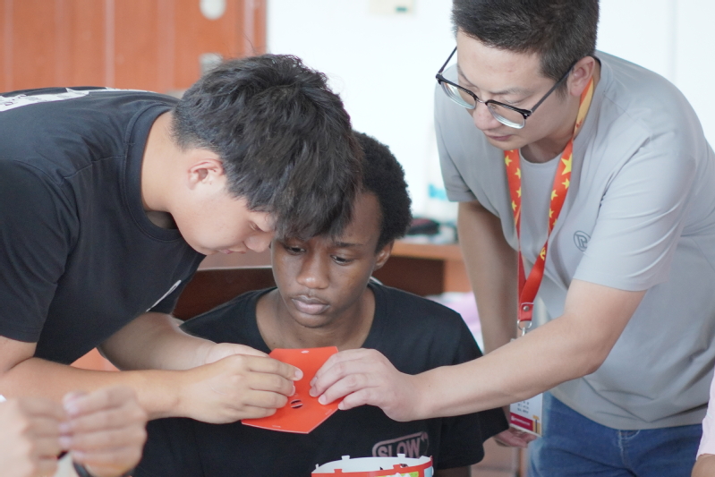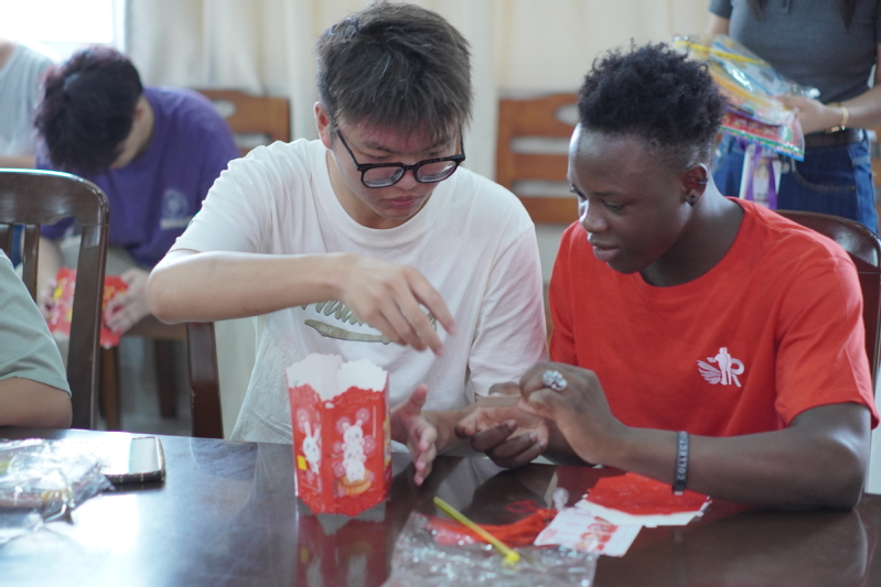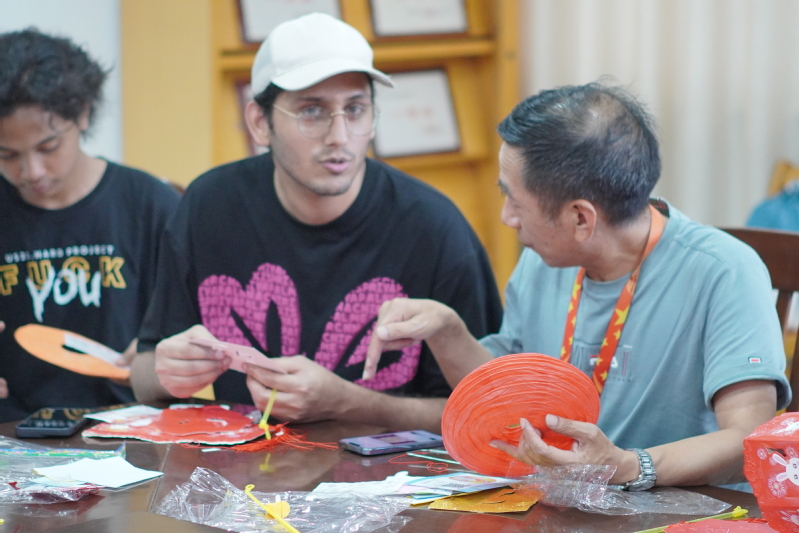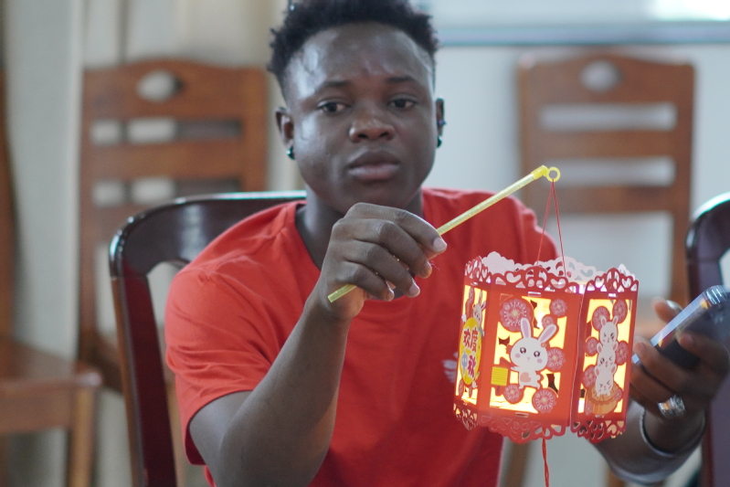 在接下来的花灯制作过程中,模具技术学院的师生和留学生们满怀热情一步步地跟着志愿者对灯笼的制作步骤和技巧讲解进行制作,完成了一盏盏象征着幸福和团圆的手工灯笼。