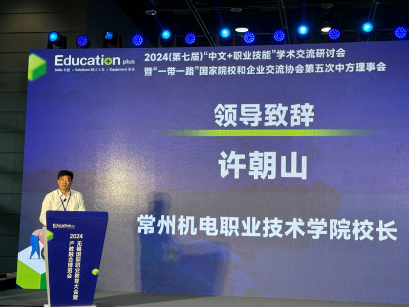 9月12日,EducationPlus2024无锡国际职业教育大会暨产教融合博览会在无锡太湖国际博览中心开幕。大会由无锡市人民政府、德国联邦经济事务和气候行动部等多部门指导,德国教育产业协会等主办。校长许朝山应邀出席并发表主旨讲话。