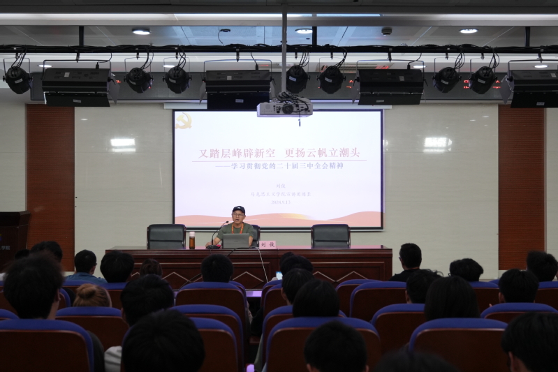 为深入贯彻落实党的二十届三中全会精神,进一步引导广大共青团干部和团员青年将思想和行动统一到党中央的决策部署上,确保全会精神深入人心、落地见效。9月13日下午,学习贯彻党的二十届三中全会精神宣讲会暨新思想公开课在图书馆蓝厅举行。公开课邀请马克思主义学院教师刘俊作为主讲人,校团委全体人员、二级学院团委书记和校院两级学生干部和青年团员代表共150余人参加本次活动。