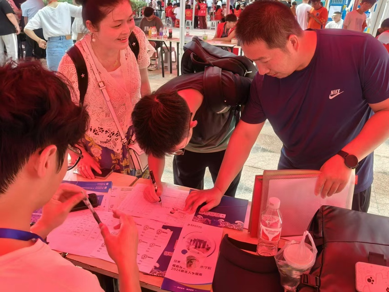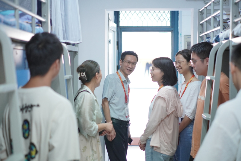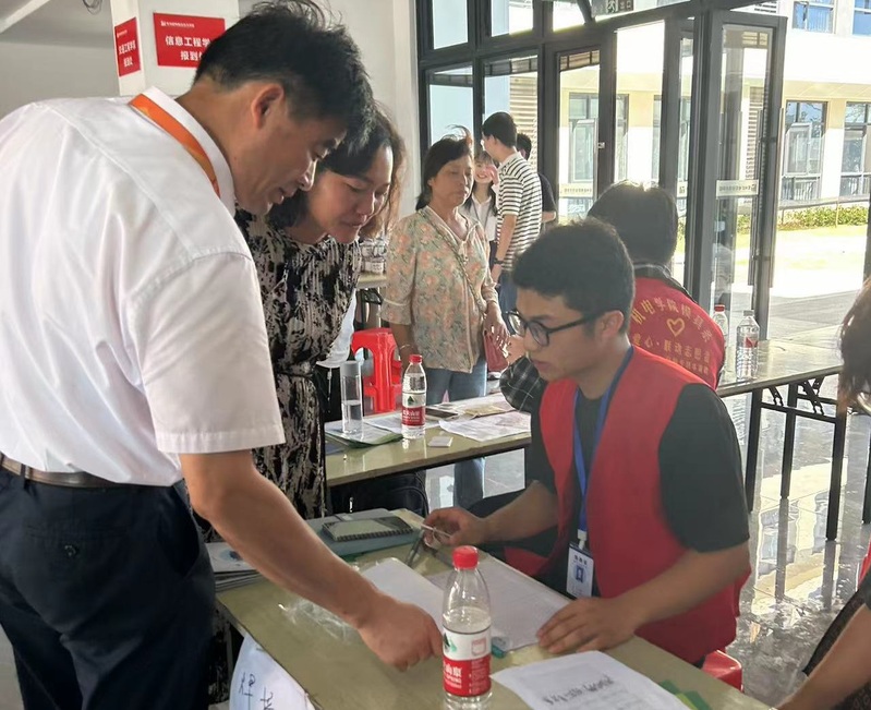学院党总支书记曹勇、院长陆建军、各班辅导员和班主任前往新生报到点检查并指导迎新工作。他们与学生及学生家长交谈,询问各项工作进展和新生情况,并对辛勤工作、热情服务的志愿者表达关怀。