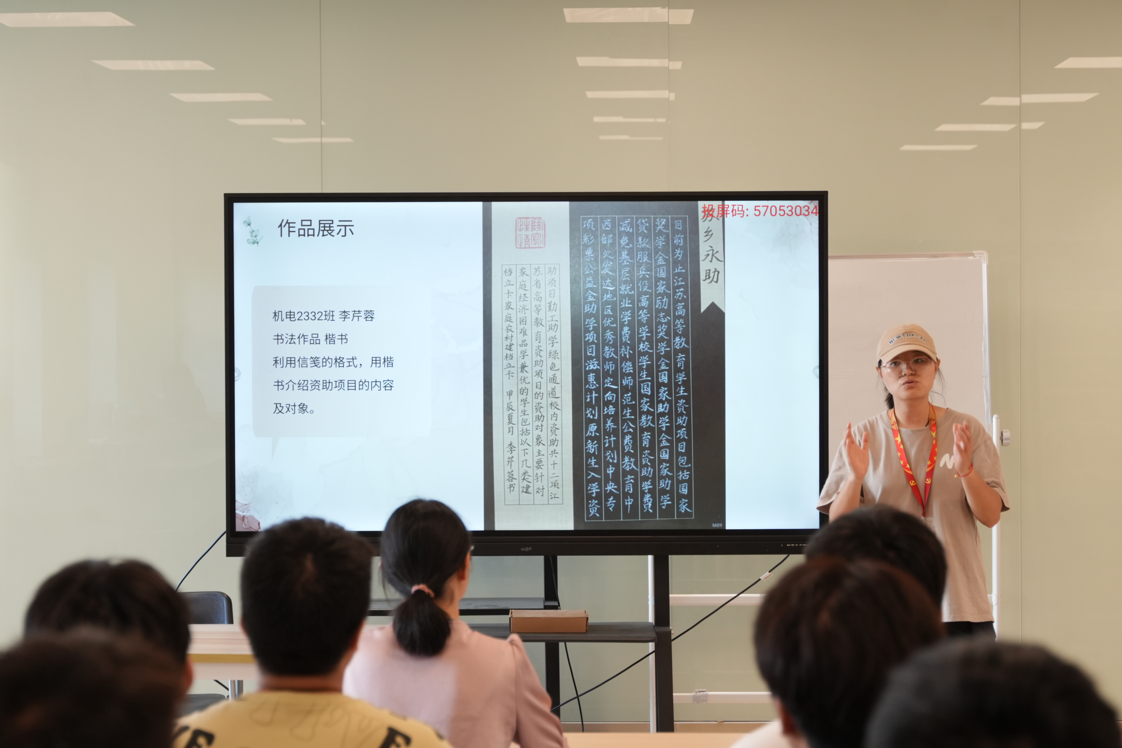 在作品展示环节,获奖学生对他们的资助宣传作品进行了主题阐述和创作过程讲解。此外,活动还邀请了暑期社会实践资助宣传小分队分享了暑期走访和“资助政策进社区”暑期社会实践的体验。