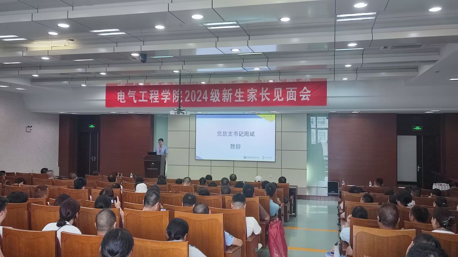 周斌对新生家长的到来表示衷心感谢和热烈欢迎,从办学历史、学科建设、师资力量、学生培养质量等方面对学院进行了详细的介绍。电气工程学院专业实力强、教学水平高,为城市建设、地方产业发展输送了大量高技术技能人才。他希望新生家长放心放手不放任,加强家校沟通,形成家校共育合力。