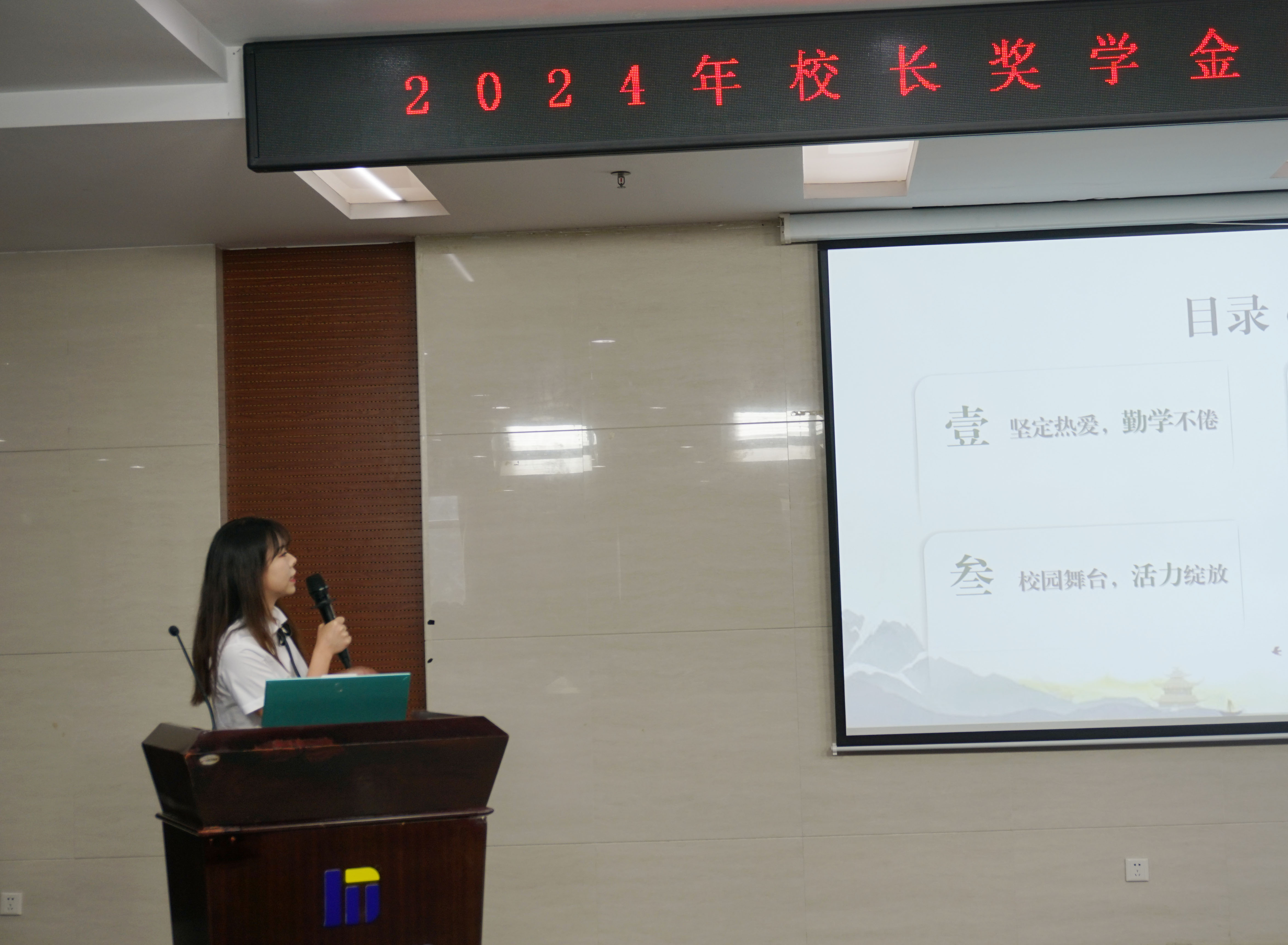9月19日,2024年校长奖学金暨校园“十佳之星”风采展评在蓝厅举行。教务处处长吴荣、学工处处长刘娟芳,体育部、通识教育部主任仇超,团委副书记季迪非、宣传部副部长孙晓瑨担任专家评审。