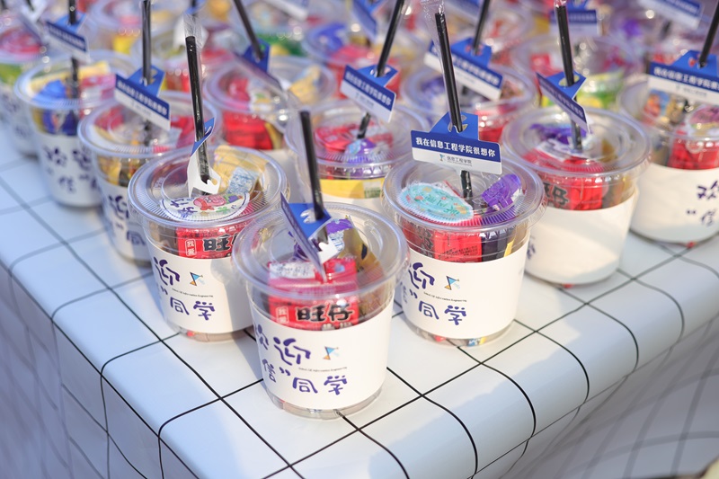 在迎新现场,信息工程学院准备了特色纷呈的活动,帮助新生更好地适应新环境。“开学第一杯‘奶茶’”特色礼物让新生们感到惊喜,大家纷纷拿着“奶茶杯”拍照打卡。学院还贴心地为每个宿舍都配齐了卫生用品,为报到当天恰逢生日的新生们举办特别的集体生日会,让新生感受到了学校大家庭的温暖。新生们纷纷表示,学院新鲜温暖的迎新氛围消除了他们刚刚步入学校的忐忑与不安,也让他们对接下来的校园生活充满了期待。