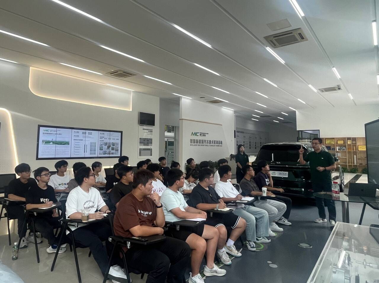课堂上,学生们认真聆听,积极踊跃的参与互动交流,激发了对新能源汽车行业浓厚的兴趣,明确了自己的职业规划和发展方向。