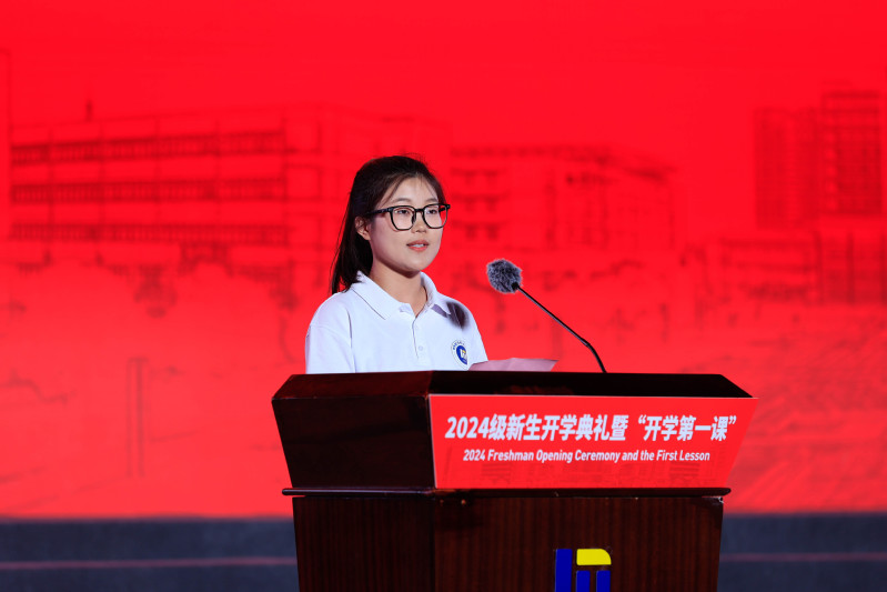 信息工程学院学生刘唱作为新生代表发言。她以三句话与新生共勉:以求真务实为基础,在学习专业知识上下功夫;以自强不息为动力,在实现全面发展上下功夫;以锐意进取为追求,在勇于挺膺担当上下功夫,争做“知行并进”的机电人。