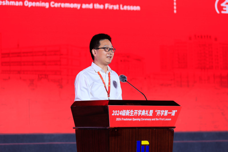 全国辅导员年度人物王奇作为教师代表发言。他表示,大学是知识殿堂与梦想起航之地。他勉励新生,要做好大学规划,明确目标,用知识、智慧绘制青春画卷。