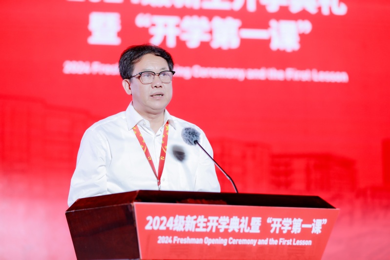 9月25日,2024级新生开学典礼暨开学第一课在武进校区田径场举行。校党委班子出席,相关职能部门、二级学院负责人、校友代表、辅导员、班主任和5600余名新生参加开学典礼。开学典礼由副校长黄宝玲主持。